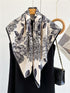 The Camellia Noir scarf is crafted from 100% pure mulberry silk crepe de chine, a lightweight silk with a soft matte texture and graceful drape. The black-and-white camellia illustration brings timeless charm — a modern take on botanical beauty with minimalist allure.